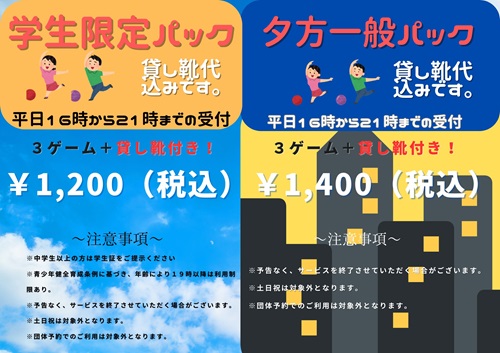 平日16時以降貸靴代込み3Gパックやってます!